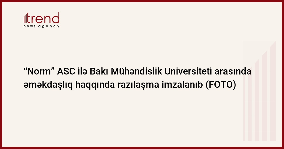 “Norm” Açıq Səhmdar Cəmiyyəti (ASC) və Bakı Mühəndislik Universiteti (BMU) arasında əməkdaşlıq haqqında razılaşma imzalanıb. Sənədi BMU-nun rektoru, professor Havar Məmmədov və “Norm” ASC-nin Baş icraçı direktoru Henning Sasse imzalayıb.