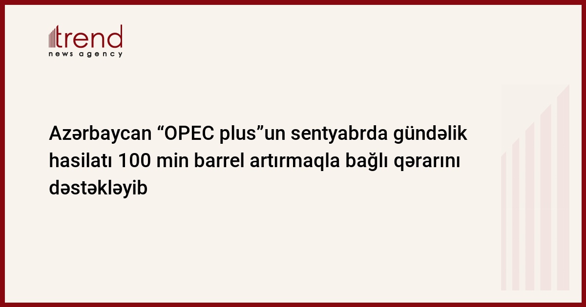 Neft İxrac edən Ölkələr Təşkilatına (OPEC) üzv və qeyri-üzv ölkələrin nazirlərinin 31-ci iclasında gündəlik neft hasilatının sentyabrda 100 min barrel artırılması ilə bağlı qərara Azərbaycan da öz dəstəyini ifadə edib.