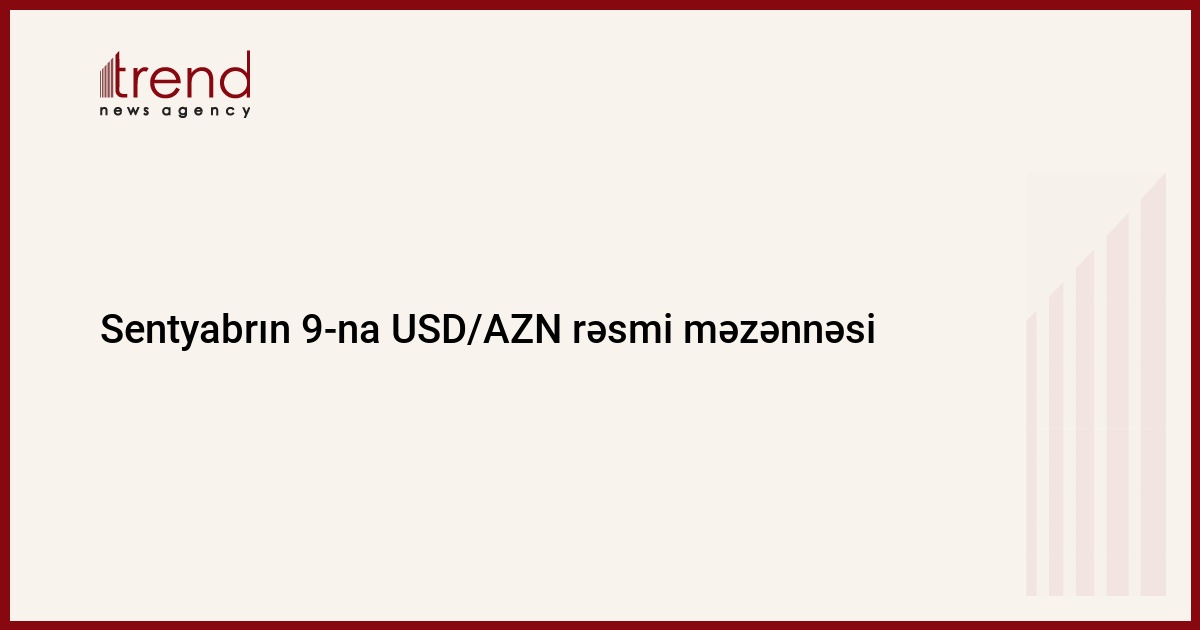 Azərbaycan Mərkəzi Bankı (AMB) sentyabrın 9-na olan USD/AZN rəsmi məzənnəsini açıqlayıb.