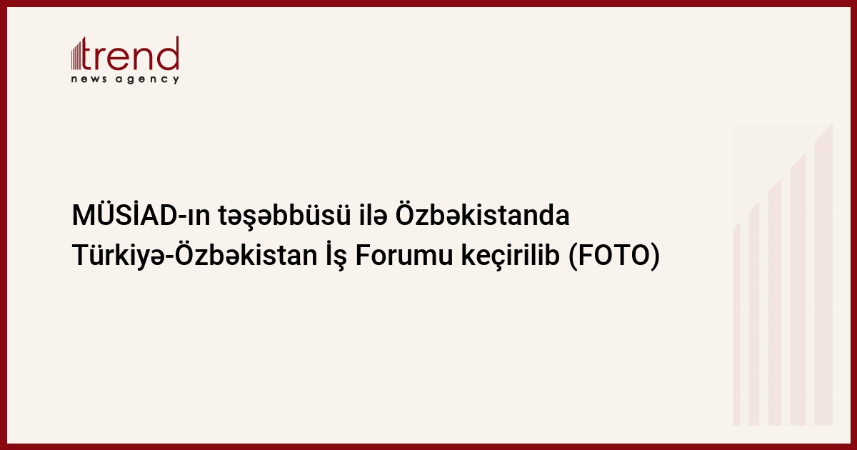 Müstəqil Sənayeçi və İş Adamları Dərnəyinin (MÜSİAD) təşəbbüsü ilə Özbəkistanda Türkiyə-Özbəkistan İş Forumu keçirilib.