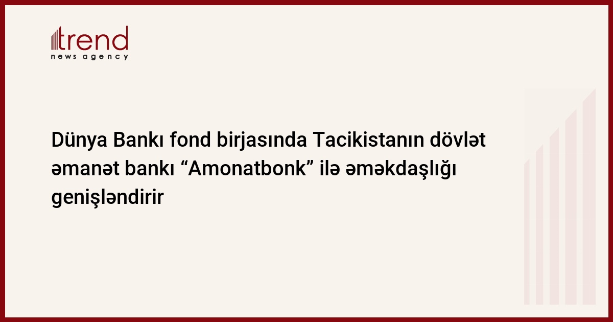 Dünya Bankı (DB) ölkənin fond birjasının yenidən qurulmasında Tacikistanın dövlət əmanət bankı “Amonatbonk” ilə əməkdaşlıq etməyə hazırdır.