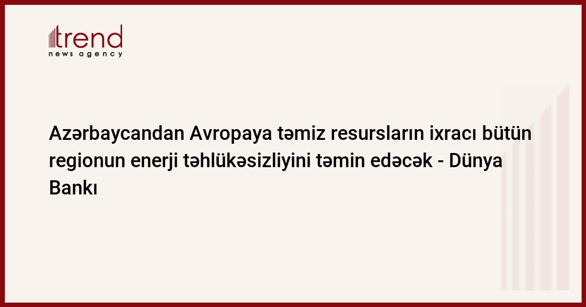 "Qara dəniz sualtı kabel layihəsi Cənubi Qafqazla Avropa arasında əlaqələrin möhkəmlənməsinə töhfə verəcək. Dünya Bankı üçün yüksək strateji əhəmiyyət kəsb edən bu layihənin icrasında iştirak etmək qürurvericidir", - o deyib.