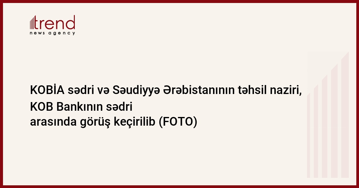 Agentlikdən Trend-ə verilən məlumata görə, görüşdə KOB subyektlərinin maliyyə resurslarına çıxışı, bu sahədə Azərbaycan və Səudiyyə Ərəbistanının təcrübəsi və dəstək mexanizmləri barədə fikr mübadiləsi aparılıb, KOBİA-nın KOB-lara göstərdiyi dəstək və xidmətlər barədə məlumat verilib.