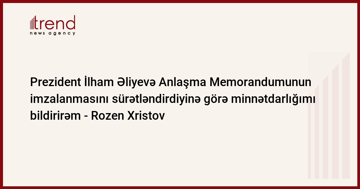 Prezident İlham Əliyevə "Həmrəylik halqası" üzrə Anlaşma Memorandumunun imzalanmasını sürətləndirdiyinə görə minnətdarlığımı bildirirəm.
