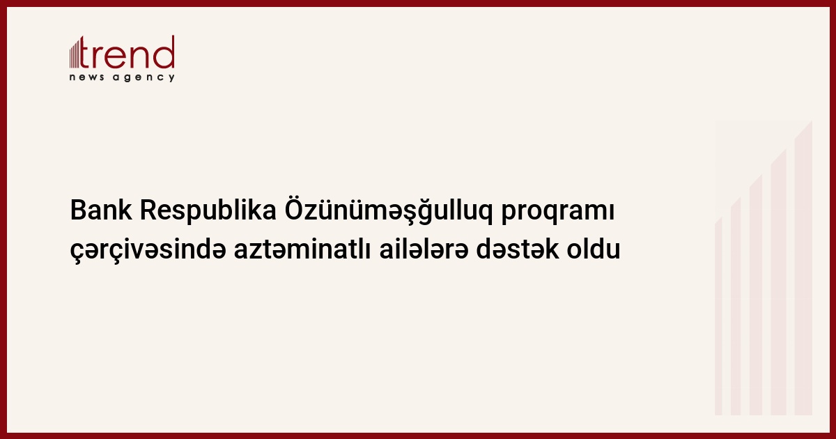 Ölkəmizdə mikro, kiçik və orta sahibkarlığın inkişafına hər zaman dəstək olan Bank Respublika, “28 may – Müstəqillik Günü” ərəfəsində həssas əhali qruplarının özünüməşğulluğunun təşkili istiqamətində başladığı növbəti layihəni uğurla başa vurub.
