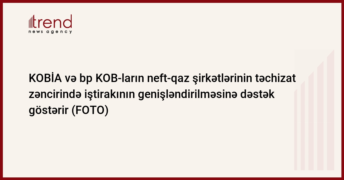 Kiçik və Orta Biznesin İnkişafı Agentliyi (KOBİA) və bp şirkətinin birgə dəstəyi ilə sərgidə KOB-lar üçün xüsusi stend qurulub. Burada əsas məqsəd sərgi çərçivəsində yerli KOB-ları neft-qaz şirkətləri ilə əlaqələndirmək və görüşlərini təşkil etməklə tərəflər arasında əməkdaşlığın qurulmasına töhfə vermək, KOB-ların neft-qaz şirkətlərinin təchizat zəncirindəki rolunu artırmaqdır. KOB-lar üçün ayrılmış stenddə neft tullantılarının təkrar emalı, inşaat, işçi geyimlərinin istehsalı, təhlükəsizlik vasitələri ilə təchizat, təmizlik vasitələrinin, sənaye avadanlıqlarının və ehtiyat hissələrin satışı, müxtəlif avadanlıqların təmiri, metal konstruksiyaların hazırlanması, texniki xidmət və s. sahələrdə fəaliyyət göstərən 10 şirkət məhsul və xidmətlərini təqdim edir.