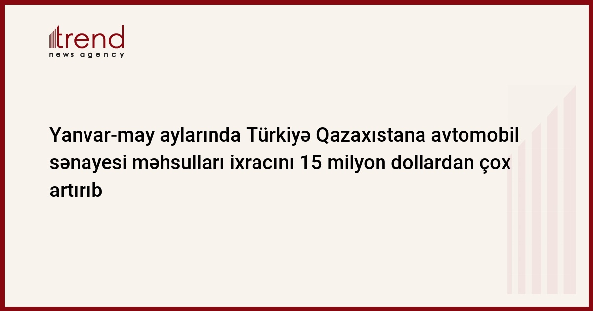 May ayında Türkiyə Qazaxıstana avtomobil sənayesi məhsulları ixracatını 2022-ci ilin eyni ayı ilə müqayisədə 91,9 faiz artıraraq 10,99 milyon dollara çatdırıb.