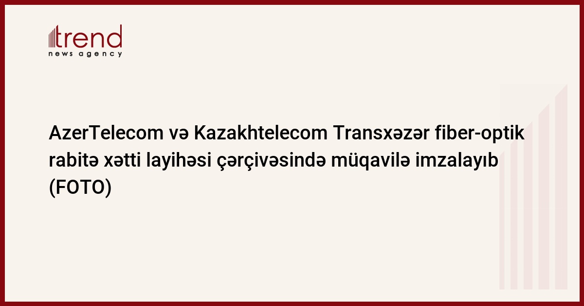 “AzerTelecom” və “Kazakhtelecom” arasında Azərbaycan-Qazaxıstan marşrutu üzrə Xəzər dənizinin dibi ilə Transxəzər Fiber-Optik Rabitə Xəttinin tikintisi və istismarı üzrə birgə müəssisənin yaradılmasına dair Səhmdarlar müqaviləsi imzalanıb. Layihənin mühüm hissəsi olan bu müqavilə onun yekunlaşdırılması istiqamətində tərəflərin birgə səylərini və fəaliyyətlərini əks etdirir.