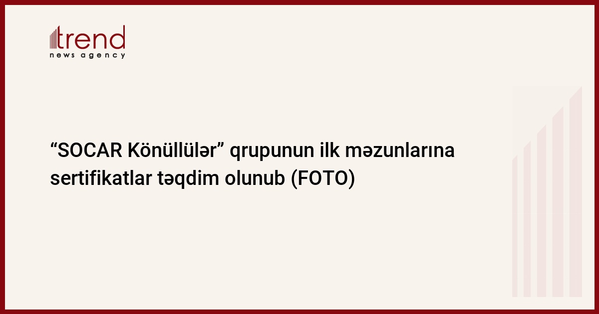 Trend xəbər verir ki, “SOCAR Tower”da keçirilən görüşdə “SOCAR Könüllülər” qrupunun ilk məzunlarını salamlayan SOCAR-ın kommunikasiya məsələləri üzrə icraçı direktoru Aygün Hüseynova Azərbaycan Respublikasının Prezidenti cənab İlham Əliyevin təşəbbüsü ilə başladılan könüllülük hərəkatının dövlətimizin həyata keçirdiyi gənclər siyasətinin mühüm istiqamətlərindən biri olduğunu bildirib. İcraçı direktor könüllülük fəaliyyətinin gənclərin müxtəlif sahələr üzrə təcrübə qazanması və mühüm biliklərə yiyələnməsi baxımından əhəmiyyətini qeyd edərək bu hərəkatın bir parçası olan “SOCAR Könüllülər” qrupunun ilk məzunlarını təbrik edib, onlara fəaliyyətlərində müvəfəqiyyətlər diləyib.