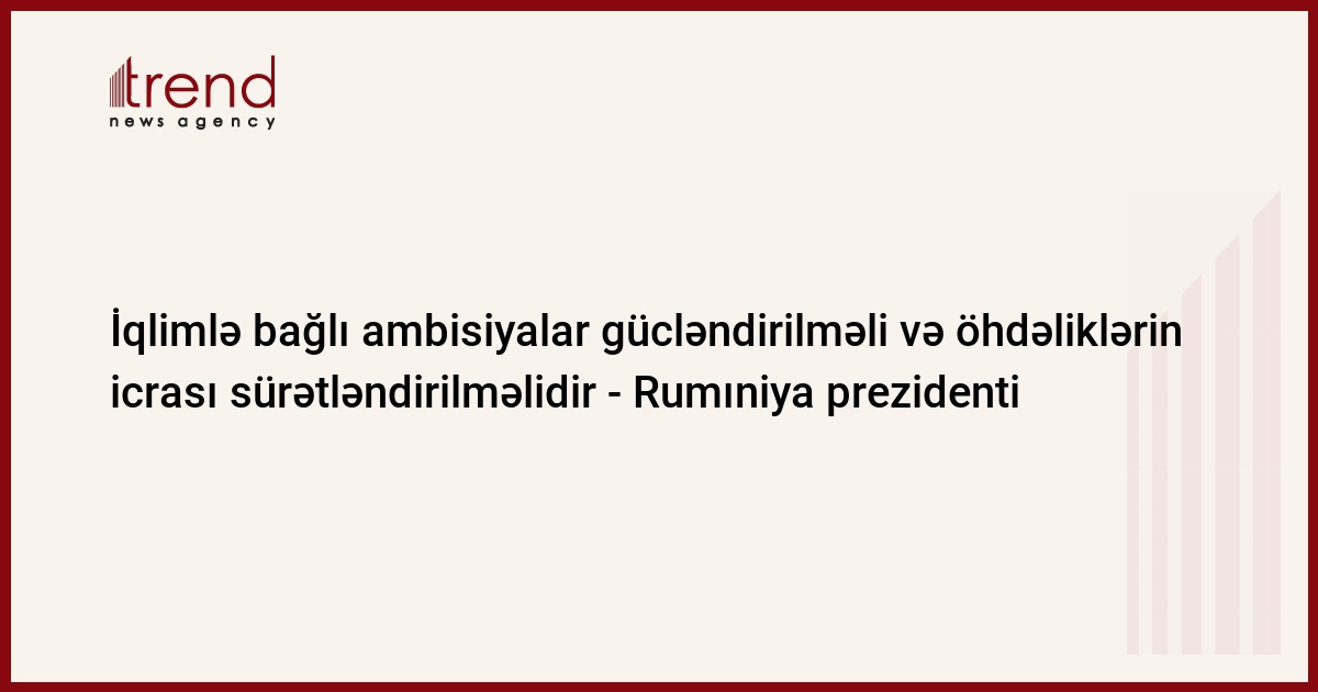 "Hamımız bilirik ki, hazırda tullantıların qlobal azaldılması Paris sazişinin hədəflərinə çatmır. İqlim dəyişikliyi, onunla yanaşı nəticələri də artır. Hər gün getdikcə daha mürəkkəb vəzifələrlə üzləşirk. Lakin ətraf mühitə diqqətimizi qoruyub saxlamalıyıq. İqlimlə bağlı ambisiyalarımızı gücləndirməli və öhdəliklərin icrasını sürətləndirməliyik. Rumıniya 1990-cu illə müqayisədə 2030-cu ilədək tullantı səviyyəsini təqribən 80 faiz azaltmağa, daha sonra isə sürətlə iqlim neytrallığına yaxınlaşmağa çalışır", - o deyib.