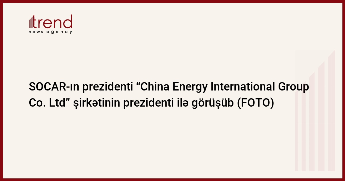 6 dekabr 2023-cü il tarixində Azərbaycan Respublikası Dövlət Neft Şirkətinin (SOCAR) prezidenti Rövşən Nəcəf “China Energy International Group Co. Ltd” şirkətinin prezidenti Qiao Xubin ilə görüşüb.