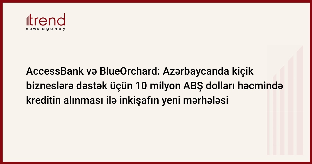 AccessBank-ın, - mikrokreditlərin maliyyələşdirilməsi məqsədi ilə BlueOrchard Microfinance Fund tərəfindən cəlb etdiyi kreditin məbləği 10 mln ABŞ dolları , müddəti isə 3 ildir. Yeni kredit sazişi, AccessBank-a kiçik və orta biznes kreditləri portfelinin inkişafı, eləcə də, Azərbaycanda sahibkarlığa dəstək tədbirlərinin genişləndirilməsinə imkan yaradacaq.