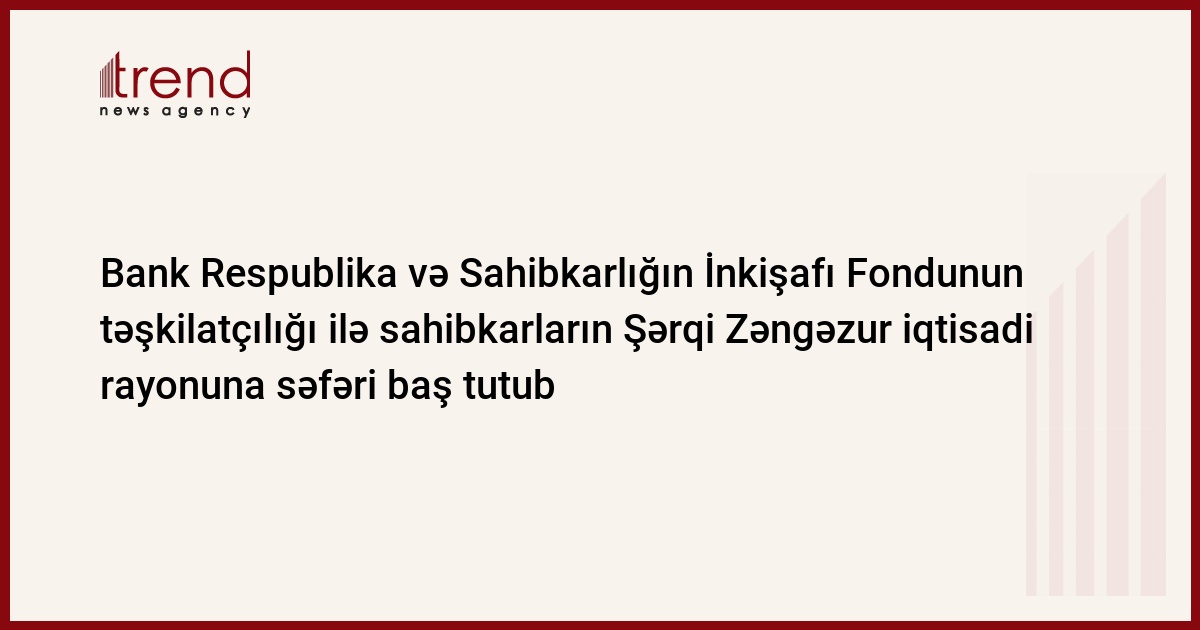 Azərbaycan Respublikasının İqtisadiyyat Nazirliyinin Sahibkarlığın İnkişafı Fondu (SİF) və ölkənin aparıcı banklarından biri olan “Bank Respublika”nın təşkilatçılığı ilə ilk dəfə olaraq sahibkarların Şərqi Zəngəzur iqtisadi rayonuna səfəri baş tutub.
