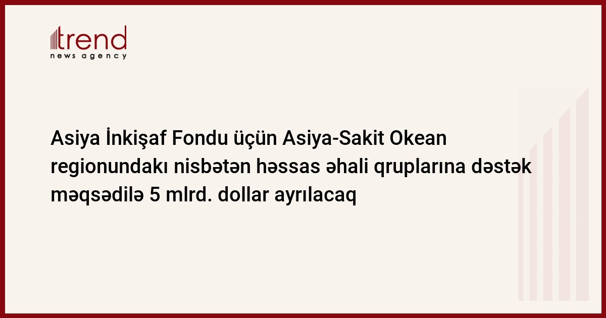 Donorlar və Asiya İnkişaf Bankı (AİB) Asiya İnkişaf Fondu (ADF) və Texniki Yardım üçün Xüsusi Fonda (TASF) 5 milyard dollar əlavə olunması barədə razılığa gəliblər.