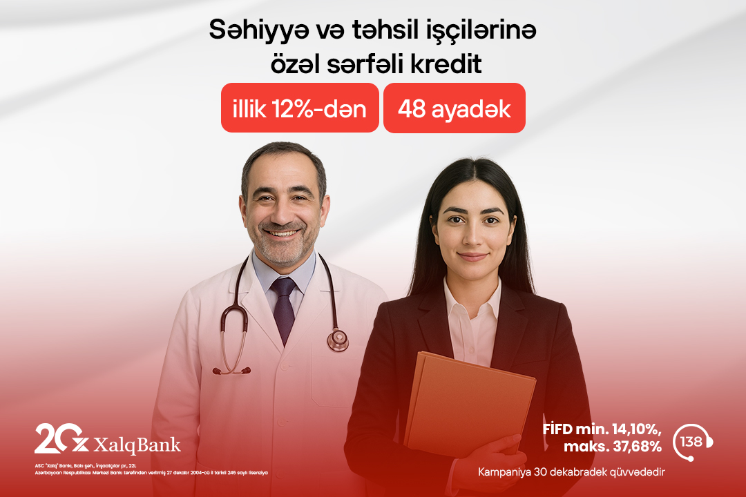 Müştərilərə daim sərfəli maliyyə həlləri təklif edən Xalq Bank səhiyyə və təhsil işçilərinə özəl kampaniyaya start verir!