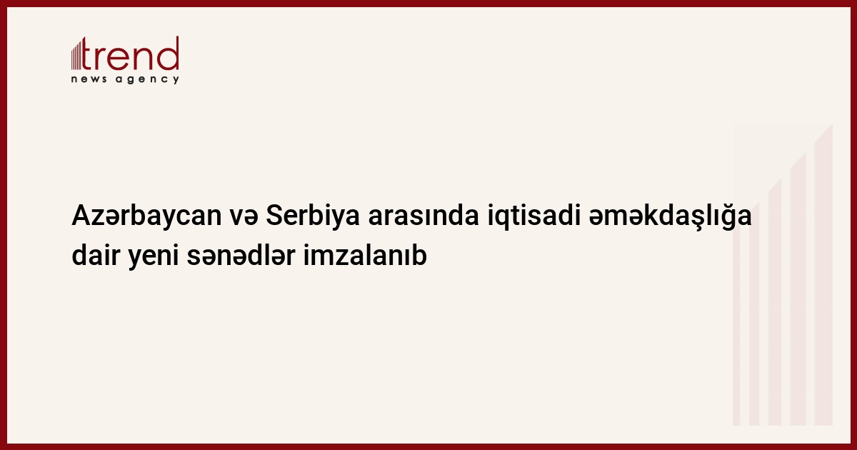 Azərbaycan və Serbiya arasında iqtisadi əməkdaşlığa dair yeni sənədlər imzalanıb.