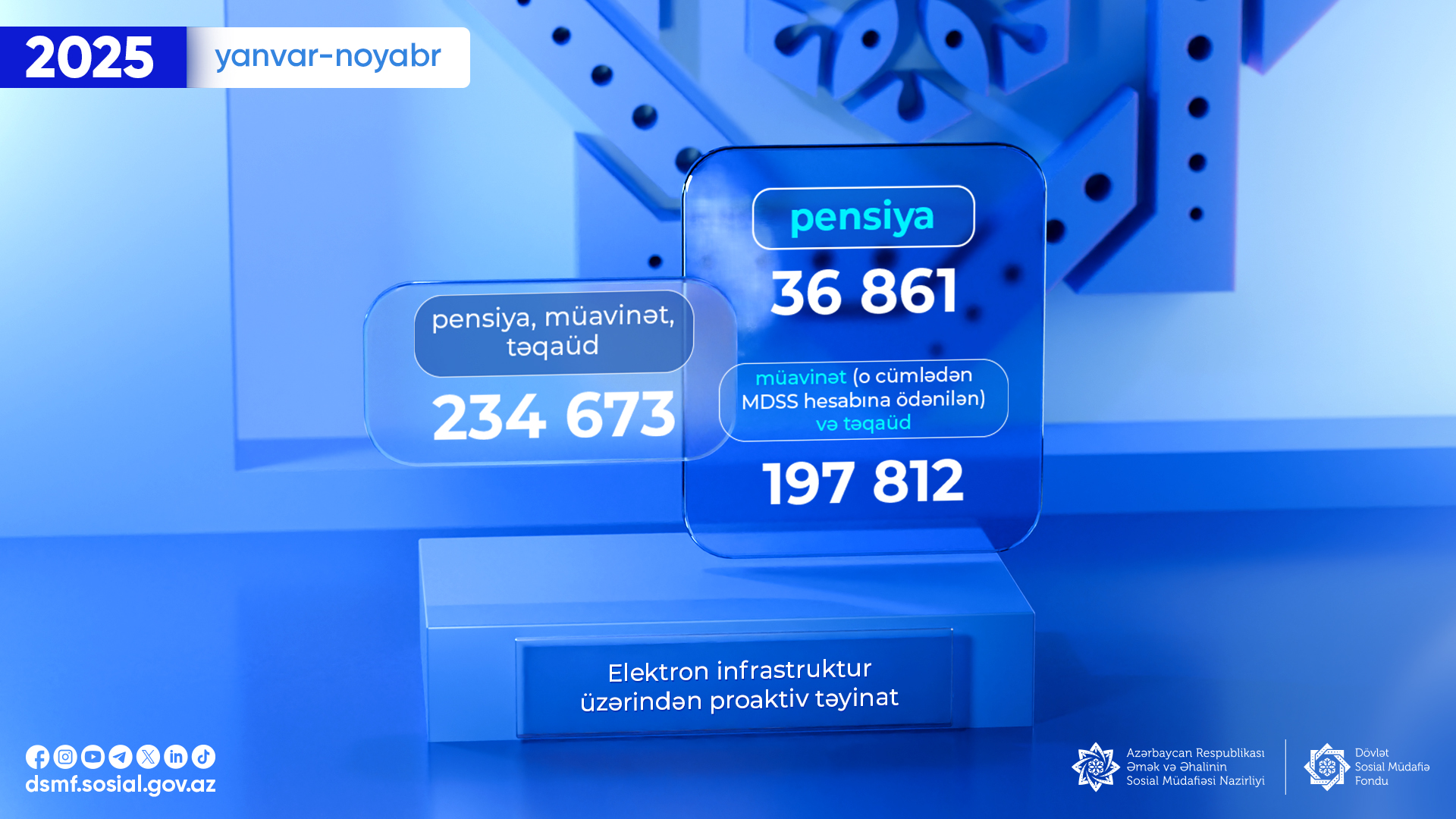 2025-ci ilin yanvar-noyabr ayları ərzində 234 673 pensiya, müavinət və təqaüd təyinatı elektron infrastruktur üzərindən proaktiv qaydada həyata keçirilib.