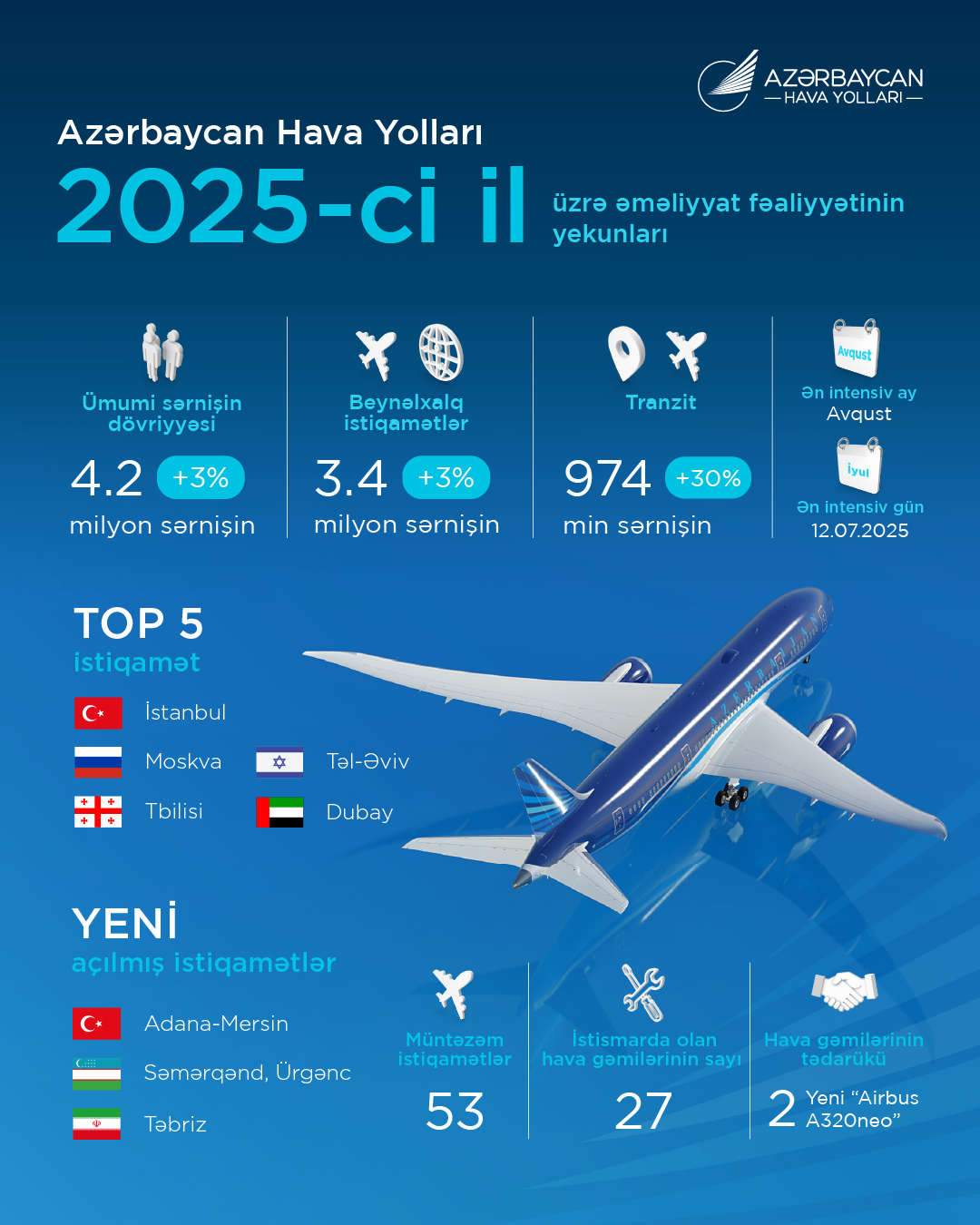 Beləliklə, 2025-ci ilin nəticələri Azərbaycanın aviasiya sektorunun beynəlxalq inteqrasiya, təhlükəsizlik və strateji liderlik istiqamətində ardıcıl və sistemli şəkildə inkişaf etdiyini bir daha təsdiqləyir.