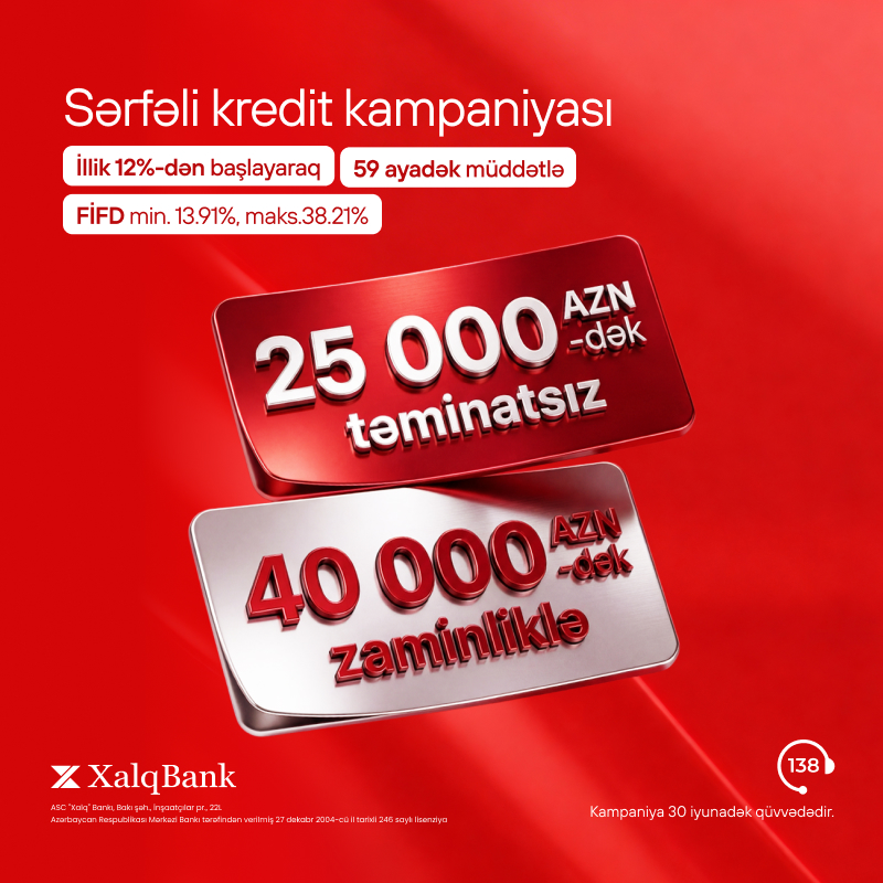 "Xalq Bank" müştərilər üçün rahat və sərfəli maliyyə imkanları təqdim etmək məqsədilə yeni istehlak krediti kampaniyasına start verir. Sərfəli şərtlər müştərilərə müxtəlif istehlak təyinatlı xərclərini əlavə maliyyə yükü olmadan planlaşdırmağa imkan verir.