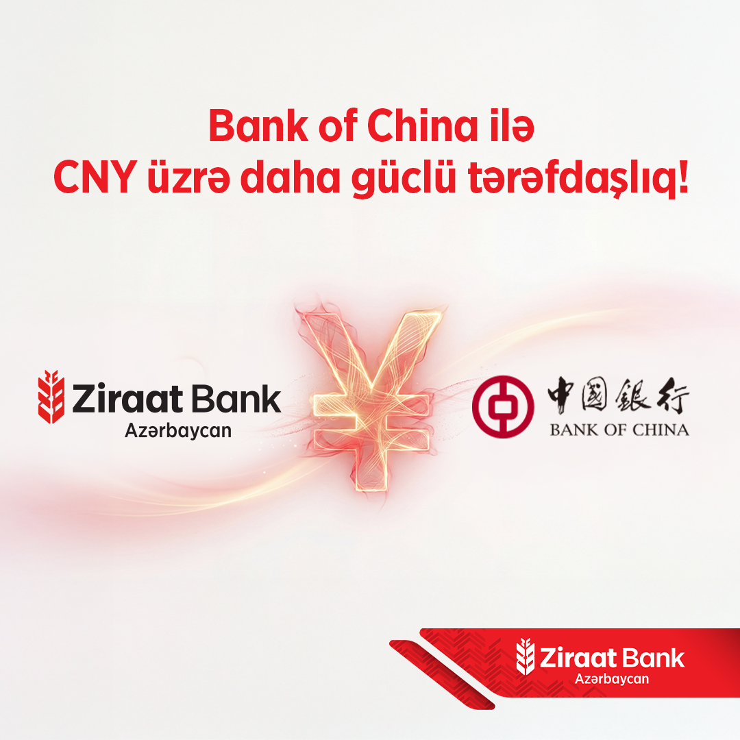 Dünyanın 20 ölkəsində fəaliyyət göstərən "Ziraat Maliyyə Qrupu"nun üzvü olan "Ziraat Bank Azərbaycan", Çin Xalq Respublikasının aparıcı maliyyə institutlarından biri olan "Bank of China"da Çin yuanı (CNY) valyutası üzrə müxbir hesab açıb.