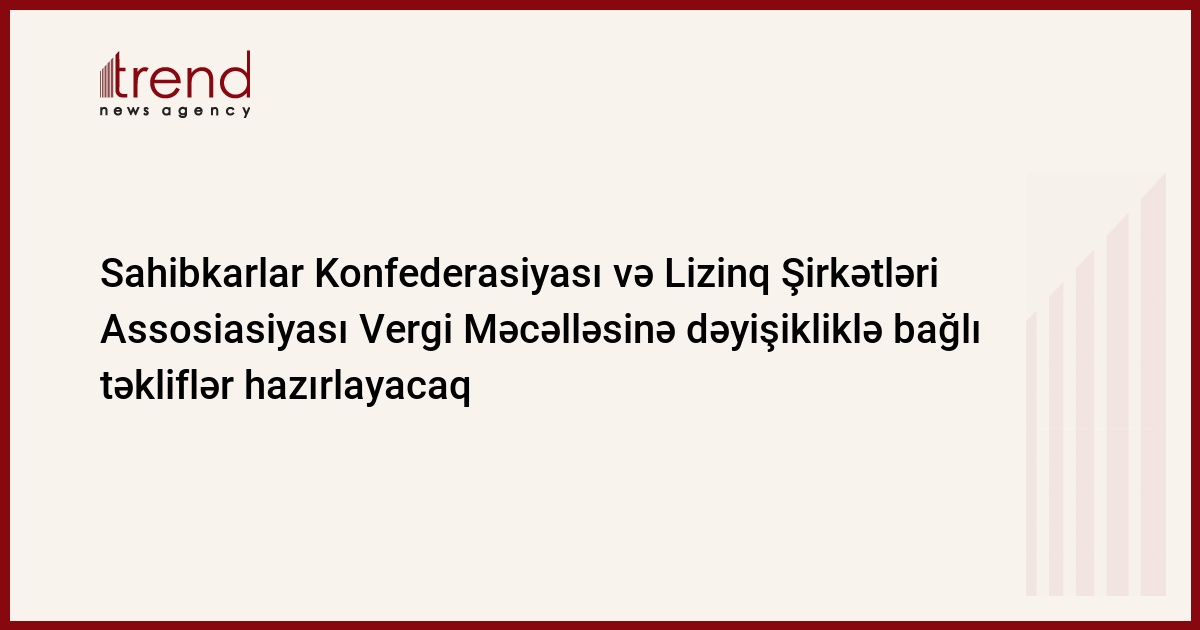 Azərbaycan, Bakı / Trend müxbir Ü.İsmayılova/ Azərbaycan Milli Sahibkarlar Konfederasiyası (AMSK) Azərbaycanın Lizinq Şirkətləri Assosiasiyası (ALŞA) ilə birlikdə lizinq əməliyyatları üzrə Vergi Məcəlləsinə dəyişikliklərin edilməsi ilə bağlı təkliflər işləyib hazırlayır, bu barədə çərşənbə günü AMSK-nın rəhbəri Ələkbər Məmmədov məlumat verib.