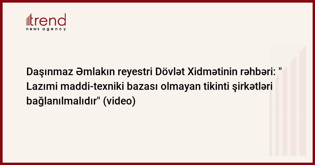 Azərbaycan, Bakı/ Trend , müxbir Ü.İsmayılova/ Azərbaycanda tikinti sahəsində fəaliyyət göstərən maddi-texniki bazası olmayan bütün şirkətlər bağlanılmalıdır. Bunu çərşənbə axşamı Daşınmaz Əmlakın Reyestri Dövlət Xidmətinin rəhbəri Arif Qaraşov bildirib.