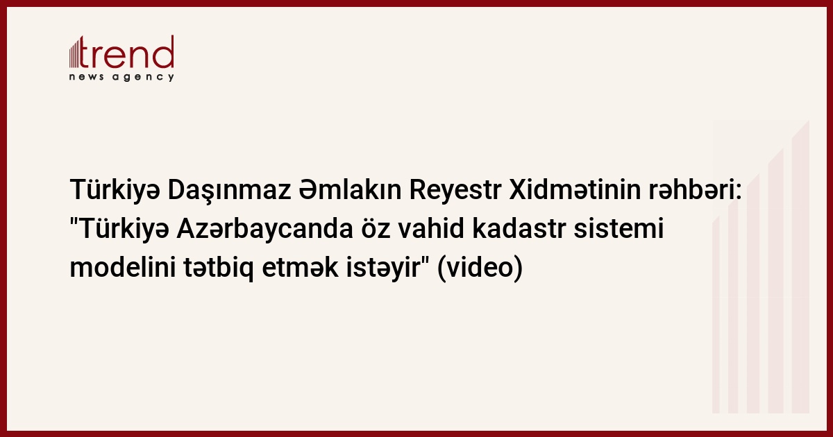Azərbaycan, Bakı Trend , müxbir Ü.İsmayılova/ Türkiyə Daşınmaz Əmlakın Reyestr Xidməti Azərbaycanda öz daşınmaz əmlakın vahid kadastr sistemini tətbiq etmək istəyir. Bu barədə çərşənbə axşamı Bakıda Türkiyə Reyestr Xidməti rəhbəri Zəki Adlı bildirib.
