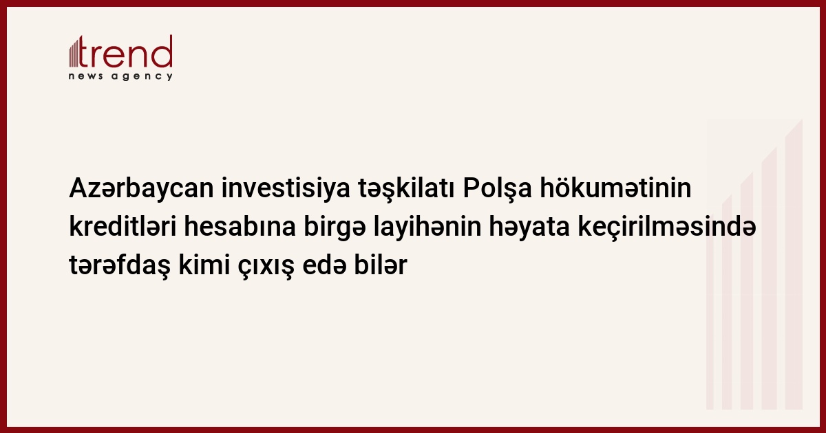 Azərbaycan, Bakı / Trend , müxbir İ.Xəlilova/ Azərbaycan hökuməti Polşa hökumətindən kredit almağa razılıq verib. Cümə axşamı, Azərbaycan - Polşa hökumətlərarası komissiyanın iclasının nəticələrinə həsr olunmuş mətbuat konfransında Azərbaycan iqtisadi inkişaf naziri Heydər Babayevin dediyinə görə, Azərbaycan və Polşa maliyyə nazirləri şərtləri müzakirə edib, layihələri konkretləşdirəcəklər.