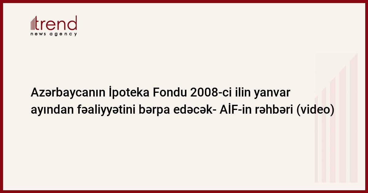 Azərbaycan, Bakı / Trend , müxbir Ü.İsmayılova/ 2007-ci ilin iyun ayında fəaliyyətini dayandıran Azərbaycan İpoteka Fondu (AİF) 2008-ci ildən fəaliyyətini bərpa edəcək. Bu barədə AİF-in icraçı direktoru Faiq Məmmədov çərşənbə günü Xəzər İşgüzar və İnteqrasiya Klubunun (CIBC) görüşündə bildirib.