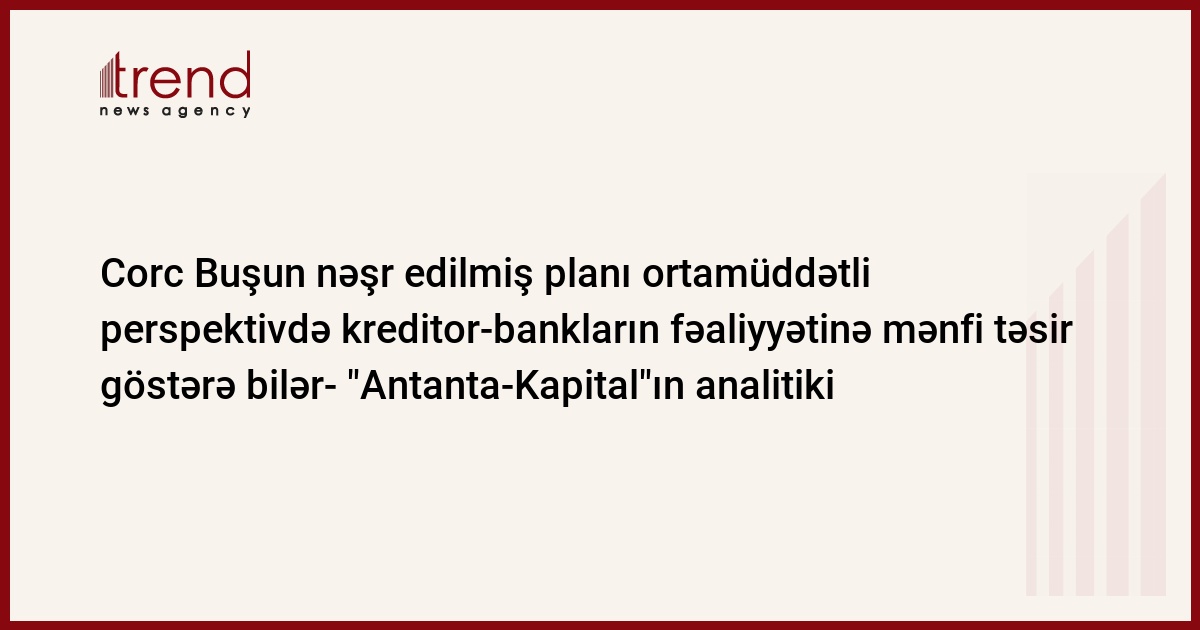Azərbaycan, Bakı / Trend , müxbir A.Bədəlova/ ABŞ prezidenti Corc Buşun dekabrda təklif etdiyi ipoteka kreditlərinin faiz dərəcələri üzərində dövlət nəzarəti ortamüddətli perspektivdə kreditor-bankların fəaliyyətinə mənft təsir göstərə bilər. Bu barədə "Antanta-Kapital" investisiya şirkətinin analitiki Maksim Osadçiy Trend a müsahibəsində bildirib.