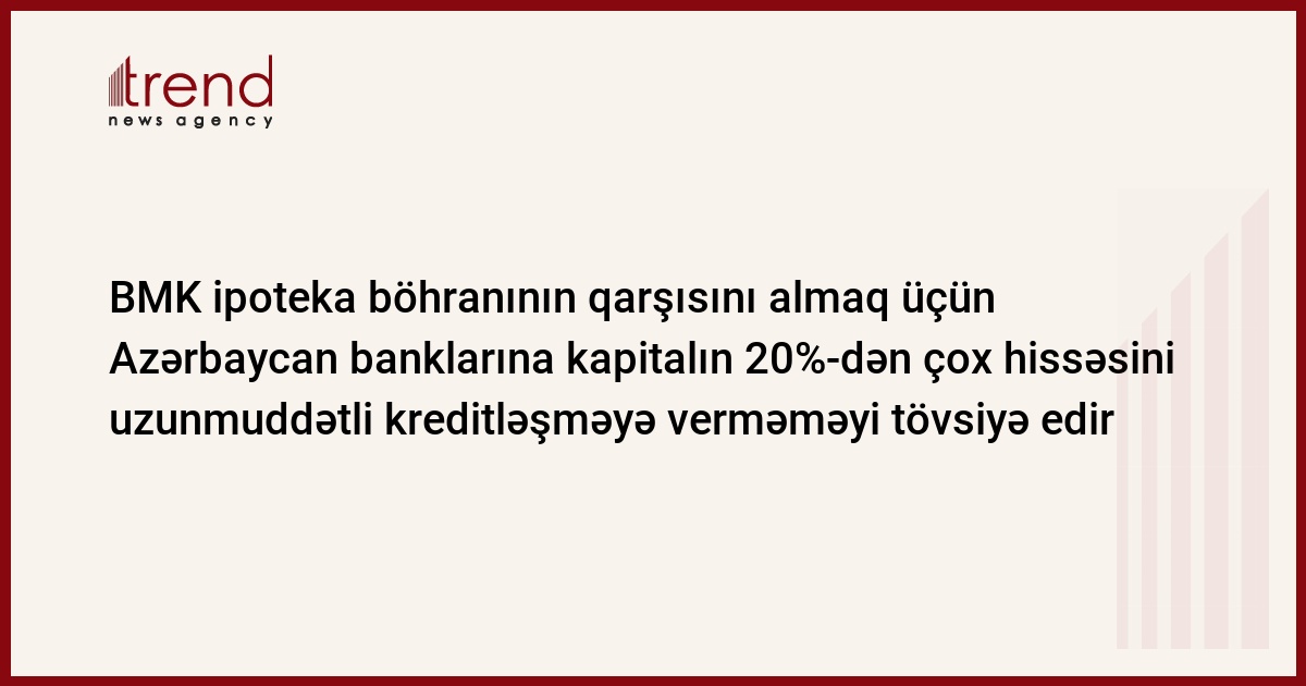 Bu arada ABŞ-da baş verən ipoteka böhranı səbəbindən, beynəlxalq maliyyə bazarlarını bürüyən problemdən qaçmaq üçün ,Azərbaycan bankları ümumi kapitalın yalnız 20%-ə qədərini uzunmüddətli kreditləşməyə yönəldə bilərlər. Belə bir məhdudiyyətin mühümlüyü xarici maliyyələşmənin ipoteka kreditlərinə nisbətən, qısa müddətə cəlb edilməsi ilə izah olunur. Yalnız bu halda qısamüddətli əmanətlərin bu hissəsi sabit hesab oluna bilər, qalan 80%-in hesabına uzunmüddətli kreditlər üzrə riskləri sığortalmaq olar. Bununla yanaşı, banklar üçün yenidən maliyyələşmə böyük əhəmiyyət daşıyır və yenidən maliyyələşmənin mexanizmləri hər bir ölkədə fərqlidir.