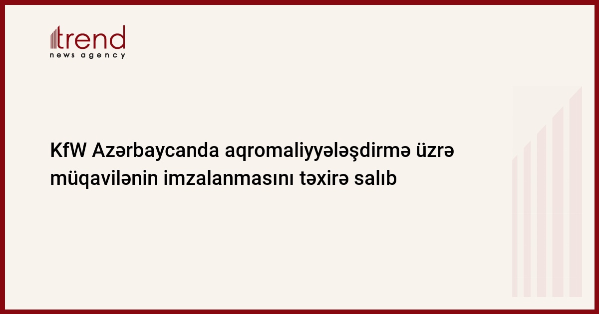Azərbaycan, Bakı/ Trend , İ.Xəlilova/Alman İnkişaf Bankı KfW Azərbaycanın səlahiyyətli kredit təşkilatları ilə kənd yerlərinin aqromaliyyələşdirməsi üzrə layihənin imzalanmasını 2008-ci ilə təxirə salıb. Layihənin ümumi dəyəri 5 mln. avrodur. Bu barədə cümə günü KfW-in Bakı ofisinin rəhbəri Natiq Abdullayev məlumat verib. KfW layihənin reallaşdırılmasına bank və bank olmayan təşkilatlar arasından iki-üç tərəfdaş cəlb etmək niyyətindədir. Müqavilənin KfW-nin maliyyə layihələri üzrə meneceri Mixael Yinçikin Bakıya bu yaxınlardakı səfərinin gedişində imzalanacağı güman edilirdi. Görüş baş tutsa da, alman tərəfi sənədlər üzərində işlərini başa çatdırmadığı üçün müqavilənin imzalanması təxirə salınıb. Abdullayev, kənd kreditlərinin verilməsini birbaşa həyata keçirəcək kredit təşkilatlarının adını səsləndirməkdən imtina edib. KfW bu kredit təşkilatlarına subordinasiya edilmiş kreditlər ayırmaq niyyətindədir. Belə kreditlər ikinci səviyyənin kapitalına yatırılır. Lakin buna baxmayaraq, onların vəsaitləri kənd əhalisinə kredit verliməsi üçün istifadə ediləcək. Layihənin birinci mərhələsində Şəki-Zaqatala və Qazaxın kənd yerləri əhatə ediləcək. Növbəti ilin yayında ilk kreditlərin veriləcəyi güman edilir. Kreditlərin şərtləri bankların Alman-Azərbaycan fondu tərəfindən maliyyələşdirməsinin şərtləri ilə oxşar olacaq.