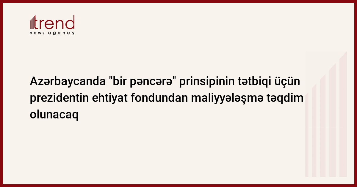 Azərbaycan, Bakı / Trend , müxbir İ.Xəlilova / 2008-ci il yanvarın 1-dən Azərbaycanın Vergilər Nazirliyində tətbiq olunacaq "bir pəncərə" prinsipi üzrə sahibkarlıq subyektlərinin dövlət qeydiyyatının təşkil edilməsi üçün ölkə prezidenti İlham Əliyev 4 mln. manatın ayrılmasına dair sərəncam verib. Bu vəsait Nazirliyə dövlət başçısının ehtiyat fondundan ayrılacaq.