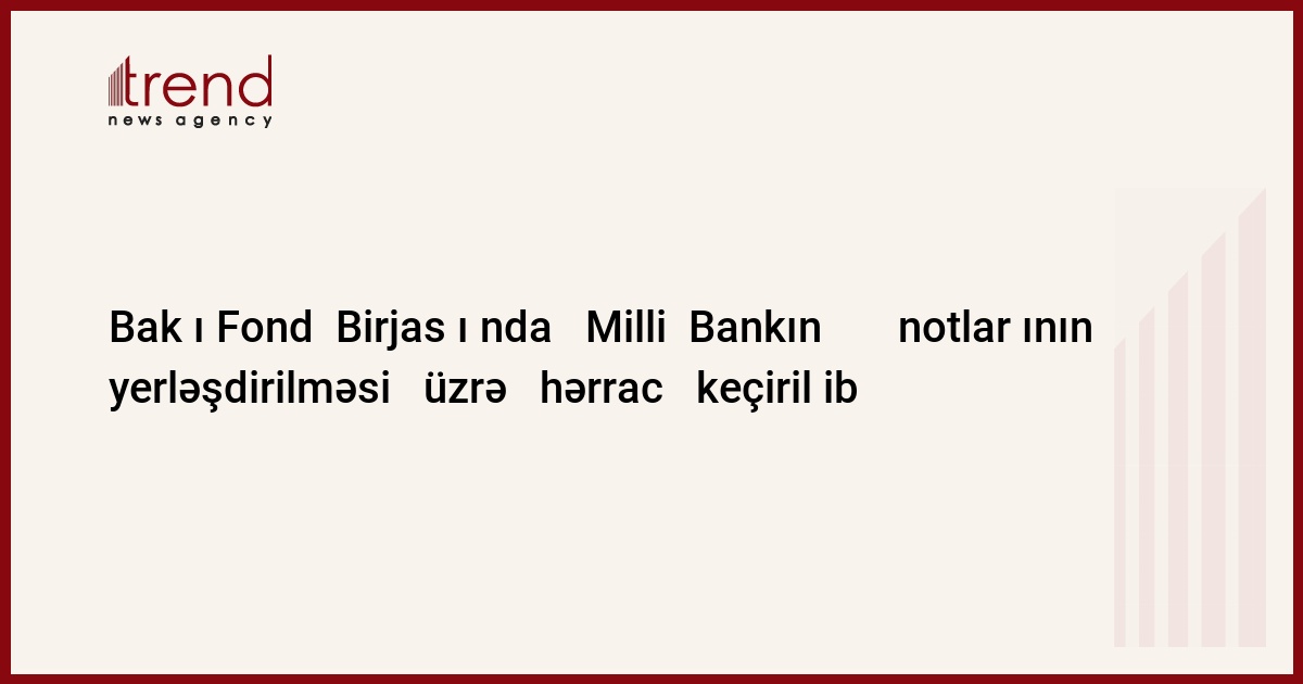 Azərbaycan, Bakı, 30 yanvar / Trend / Yanvarın 30-da Bakı Fond Birjasında Milli Bankın 50100419S dövlət qeydiyyat nömrəli, ümumi həcmi - 65 000 000 manat, bir notun nominal dəyəri - 200 manat, tədavül müddəti - 28 gün olan qısamüddətli notlarının yerləşdirilməsi üzrə hərrac keçirilib. Bu barədə çərşənbə günü Bakı Fond Birjası məlumat yayılıb.