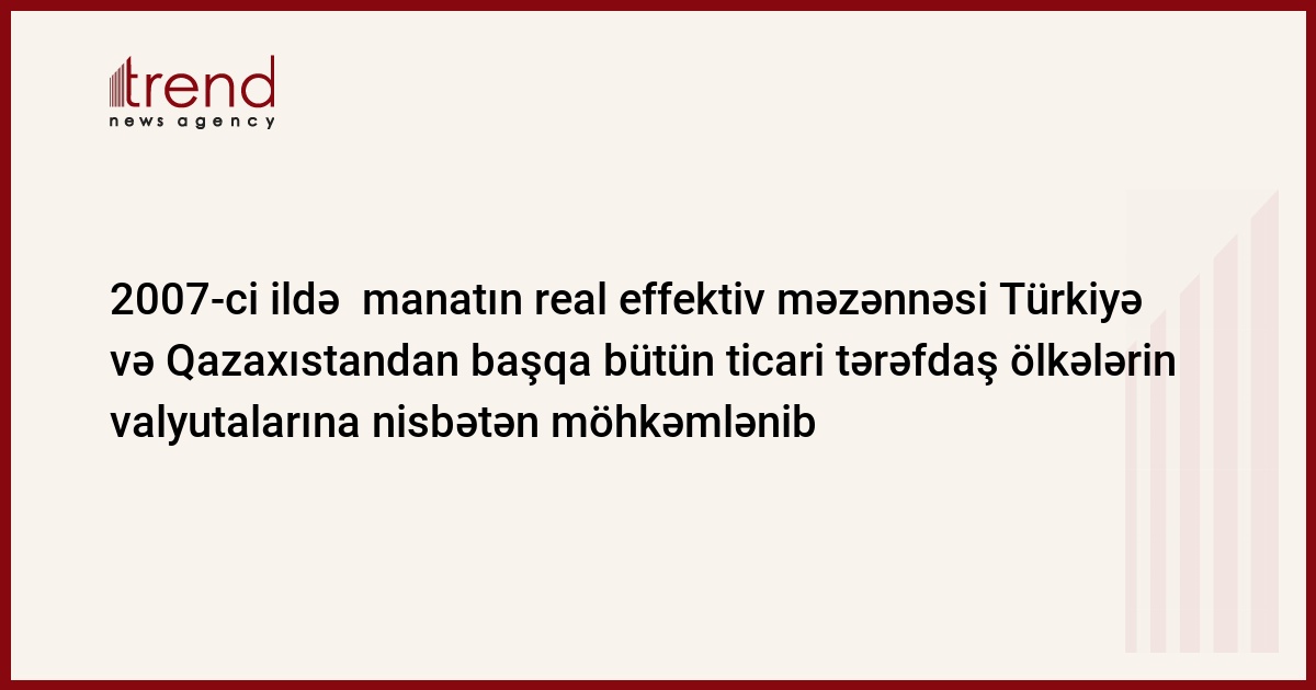 2007-ci il ərzində ABŞ, İngiltərə və Ukrayna valyutalarına nisbətən manatın real məzənnəsinin möhkəmlənmə tempi manatın nominal məzənnəsinin möhkəmlənmə tempini ötüb. Eyni zamanda, Avropa zonasının, Türkiyənin, Rusiyanın, Qazaxıstanın, İsrailin və Yaponiyanın valyutasına nisbətən manat nominal olaraq enib, real olaraq, Türkiyə lirəsi və Qazaxıstan tənqəsi istisna olmaqla bütün valyutalara nisbətən möhkəmlənib.