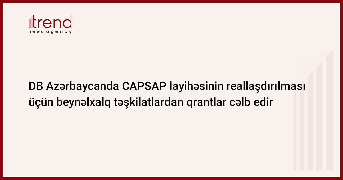 Azərbaycan, Bakı, 04 fevral/ " müxbir İ.Xəlilova/ Dünya Bankı Azərbaycanın korporativ və dövlət sektorlarında hesabatlılıq layihəsinin (CAPSAP) qiymətləndirilməsini başa çatdırıb. Layihənin reallaşdırılmasına $25 mln. ayrılacaq. Bu barədə bazar ertəsi bankın Bakı nümayəndəliyindən məlumat veriblər.