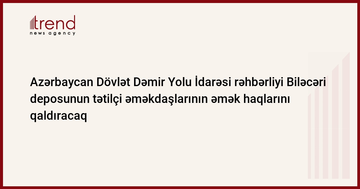 Azərbaycan, Bakı, 20 fevral / Trend , müxbir S.Əliyev/ Bu gün Azərbaycan Dövlət Dəmir Yolu İdarəsinin rəisi Arif Əsgərov Biləcəri qəsəbəsində (Bakı yaxınlığında) fevralın 15-də əmək haqlarının qaldırılması tələbi ilə tətil edən lokomotiv depo əməkdaşlarının nümayəndələri ilə görüşüb. Bu barədə çərşənbə günü İdarədən məlumat verilib.