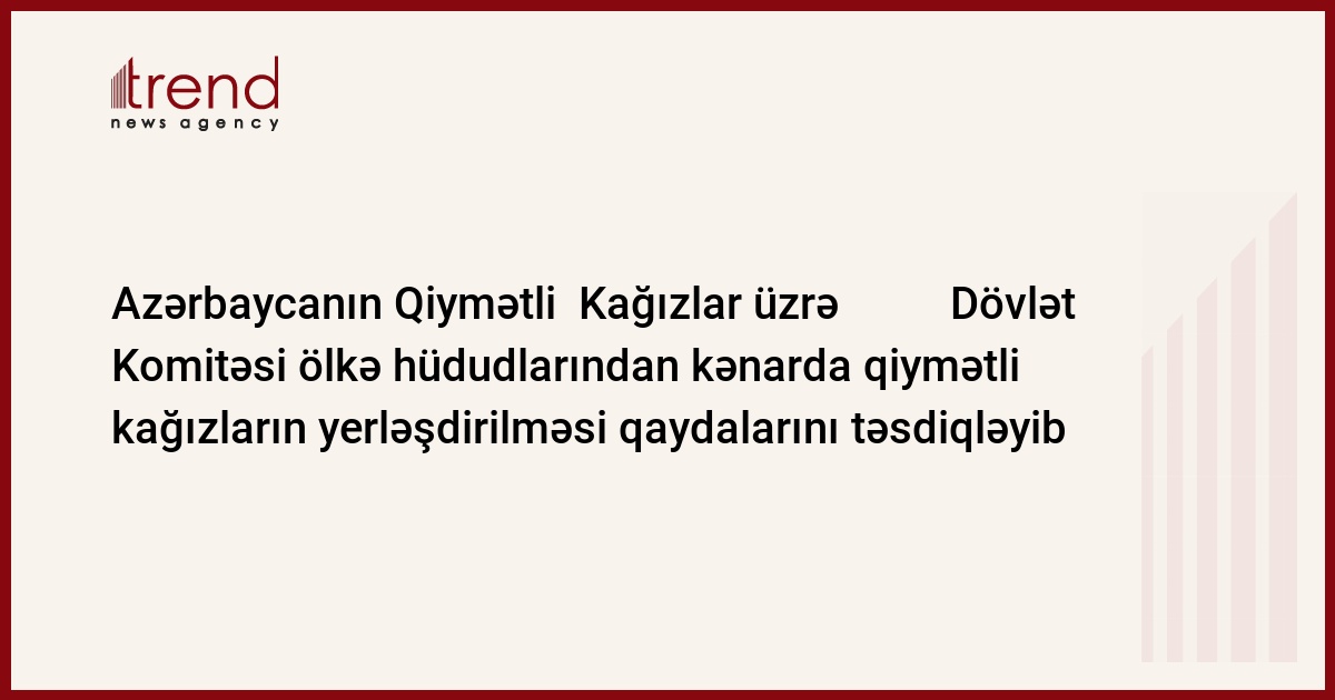 Azərbaycan, Bakı, 21 fevral / " müxbir Ü.İsmayılova / Azərbaycan Respublikası Prezidenti yanında Qiymətli Kağızlar üzrə Dövlət Komitəsi (QKDK) "Azərbaycan Respublikasında dövlət qeydiyyatına alınmış emitentlərin investisiya qiymətli kağızlarının Azərbaycan Respublikası ərazisindən kənarda yerləşdirilməsinə və ya tədavülə buraxılmasına icazə verilməsi haqqında Qaydalar"ı təsdiq edib, - Komitənin məlumatında deyilir.