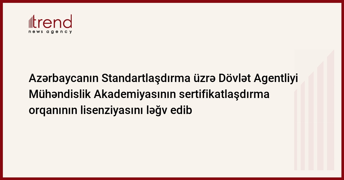 Azərbaycan, Bakı, 21 aprel / " Azərbaycanın Standartlaşdırma, Metrologiya və Patent üzrə Dövlət Agentliyi Azərbaycan Mühəndislik Akademiyasının Qida məhsulları və ərzaq xammallarının sertifikatlaşdırılması üzrə orqanının akkreditasiya attestatını ləğv edib. Agentliyin verdiyi məlumata görə, aprel ayında təşkilatda yoxlama aparılıb və sertfikatlaşdırma sahəsində çatışmazlıqlar aşkar olunub. Agentliyin 11 aprel tarixli qərarı ilə ötən ilin avqust ayında təşkilata verilən akkreditasiya attestatı ləğv edilib.