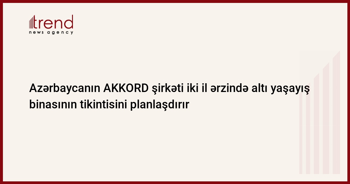 Azərbaycan, Bakı, 28 aprel/ Trend müxbir Ü.İsmayılova/ Azərbaycanın iri tikinti şirkəti AKKORD yaxın iki il ərzində altı yaşayış binasını istismara vermək niyyətindədir. Bu barədə bazar ertəsi şirkətin vitse-prezidenti Rauf Mehdiyev məlumat verib.