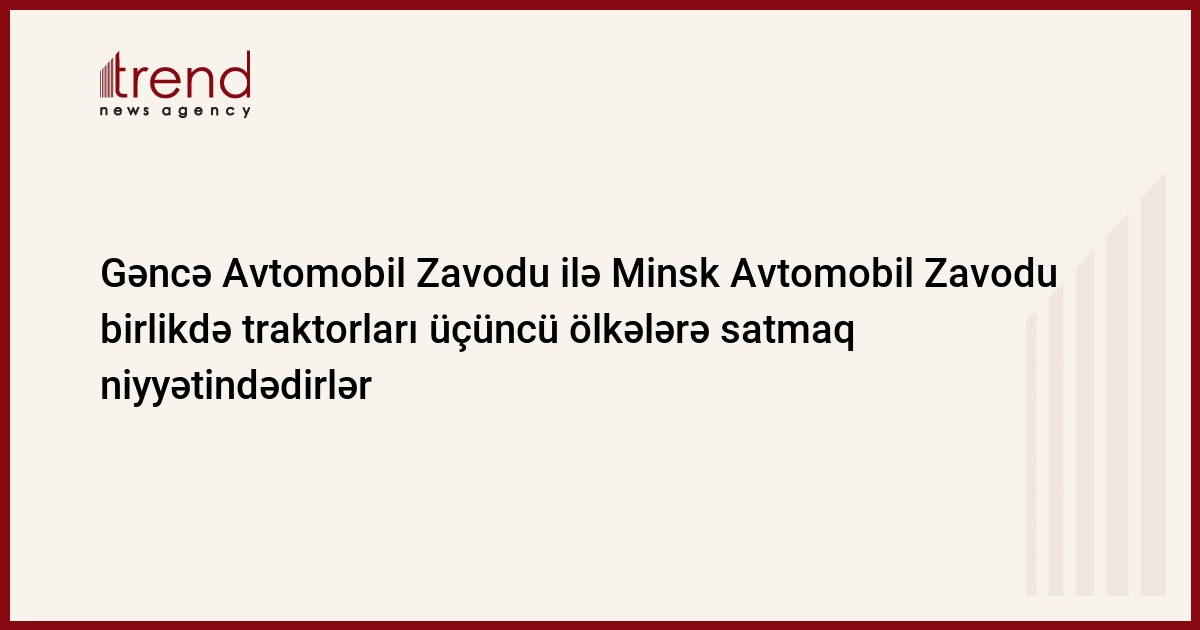 Fətiyevin sözlərinə görə, Gəncə zavodu hazırda Azərbaycanda illik gücü 8-10 min traktor olan traktorların yığılması üzrə BM-in yaradılması dair Minsk zavodu ilə danışıqlar aparır. Bu traktorların İran, Türkiyə, Gürcüstan və ola bilsin ki, Rusiyanın cənubuna satılması nəzərdə tutulur.