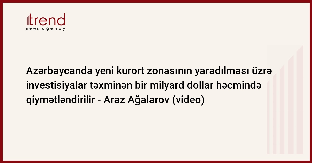 Azərbaycan, Bakı, 09 may / Trend , müxbir S.Ağayeva/ Xəzərin Azərbaycan sahilində kurort zonası yaradılacaq. Kurort zonasının yaradılması üzrə investisiyalar təxminən 1 mlrd. dollar həcmində qiymətləndirilir. Bu barədə cümə günü Bakıda tanınmış sahibkar, "Krokus" qrupunun sahibi Araz Ağalarov bildirib.