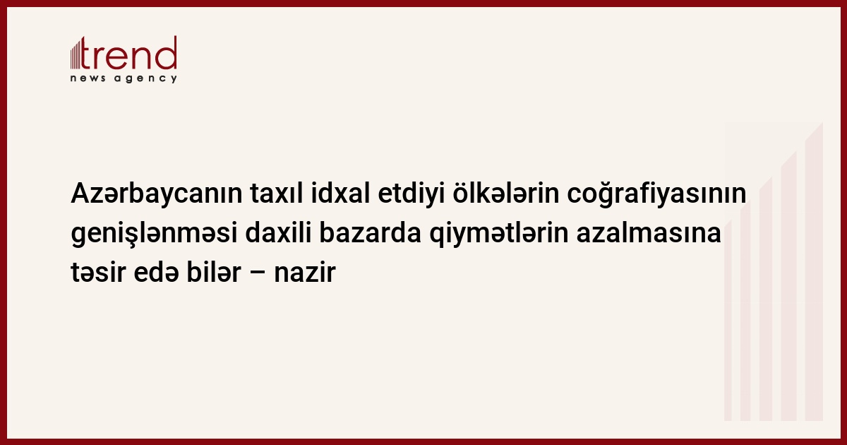 "Bir idxalçı ölkədən asılı olmaq düzgün deyil və buna görə onların coğrafiyasını genişləndirmək lazımdır, - Babayev qeyd edib. Bununla yanaşı, Azərbaycanın taxıl ehtiyatının artırılması imkanları genişlənəcək və bu, daxili bazarda qiymətlərin azalmasına təsir edəcək".