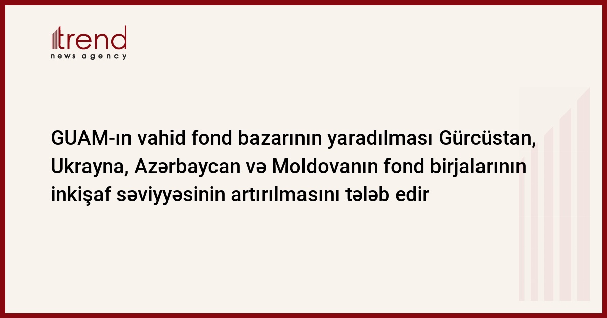 Azərbaycan, Bakı, 30 may/ Trend , müxbir İ.Xəlilova/ GUAM-a üzv ölkələr (Gürcüstan, Ukrayna, Azərbaycan və Moldova) vahid fond bazarının yaradılmasında maraqlıdırlar. Lakin, onun səmərəliliyi üçün, ilk növbədə, milli fond birjaların inkişaf səviyyəsinin artırılması tələb olunur.
