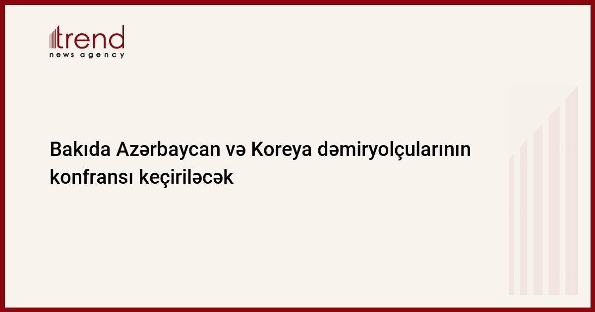 Azərbaycan, Bakı, 10 iyun / Trend , müxöbir M.Əliyev/ İyunun 30-31-də Bakıda dəmir yolu əməkdaşlığı üzrə Azərbaycan-Koreya konfıransı keçiriləcək. Bu barədə çərşənbə axşamı Koreyanın Azərbaycandakı səfirliyinin tikinti və nəqliyyat şöbəsinin rəhbəri Kim So Yonq bildirib.