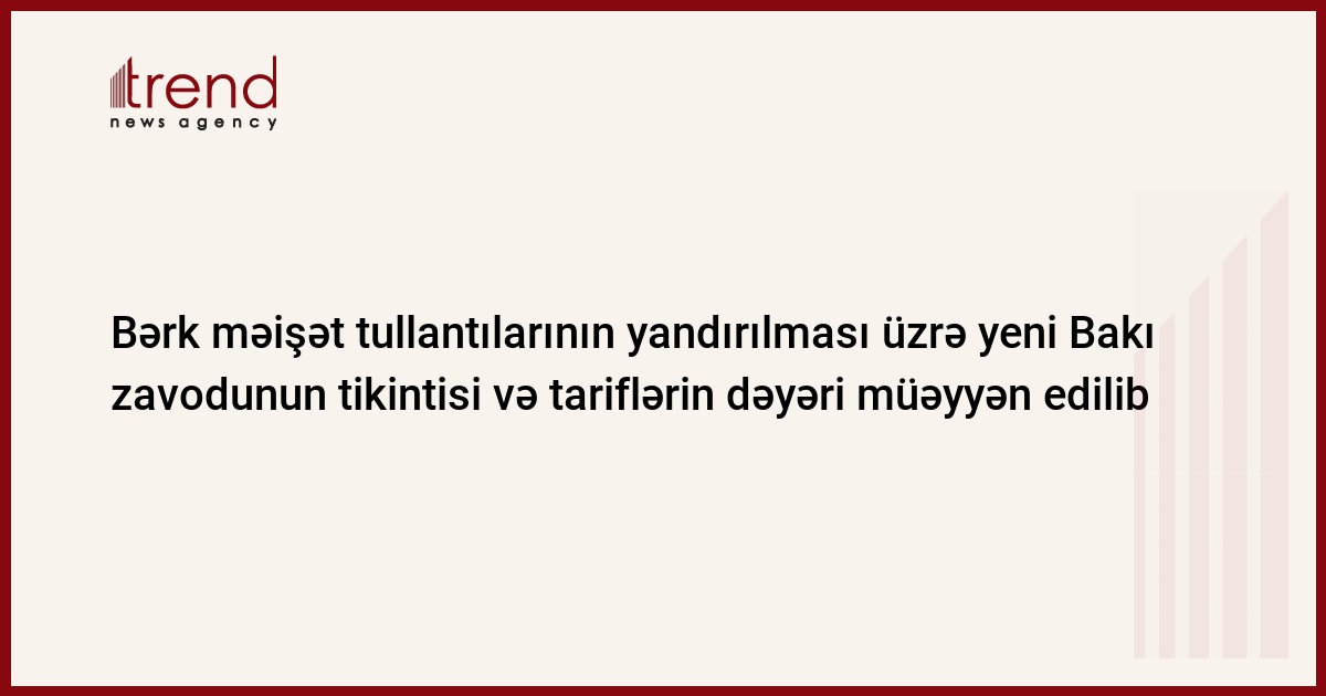 Azərbaycan, Bakı, 30 iyul/ Trend Cap , müxbir Ü.İsmayılova, A.Əliyev/ Bakıda bərk məişət tullantılarının yandırılması üzrə zavodun tikintisi ildə 231,5 mln. kvt/s elektrik enerjisi istehsal etməyə imkan verəcək. Bu barədə çərşənbə günü Nazirlər Kabinetində zavodun tikintisi layihəsinin müzakirəsi zamanı Baş nazirin müavini Abid Şərifov məlumat verib. Azərbaycanda ildə 21 mlrd. kVt/saatdan çox elektrik enerjisi istehsal olunur.