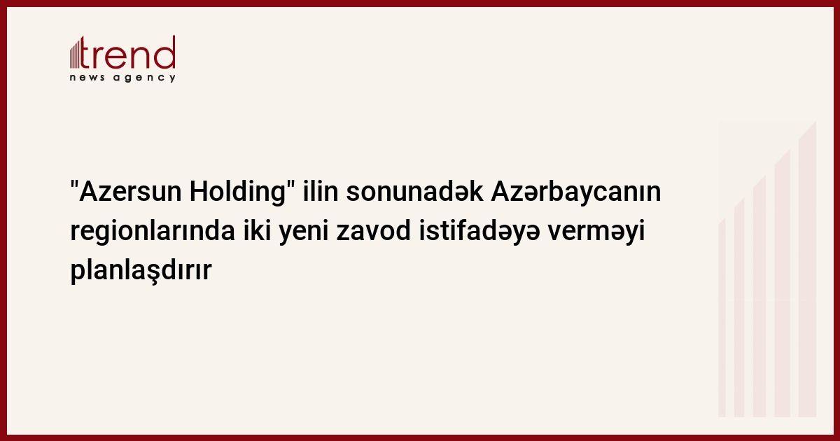 Azərbaycan, Bakı, 26 avqust / Trend , müxbir Ü.İsmayılova/ "Azersun Holding" 2008-ci ilin sonunadək heyvan və quşlar üçün yem istehsalı üzrə yeni zavod istifadəyə verməyi planlaşdırır. Bu barədə çərşənbə axşamı İmişli şəkər istehsalı zavodunun rəhbəri İsmayıl Müslümzadə bildirib.