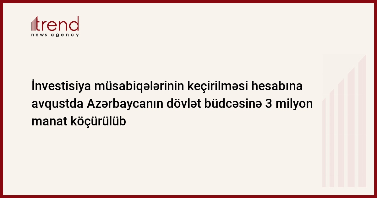 İnvestisiya müsabiqələrinin keçirilməsi nəticəsində Azərbaycanın dövlət büdcəsinə 3 mln. manat köçürülüb.