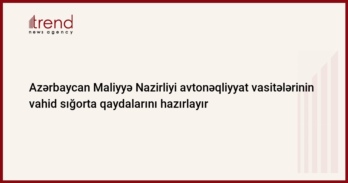 Azərbaycan, Bakı, 09 sentyabr / Trend , Ü.İsmayılova/ Azərbaycan Maliyyə Nazirliyi "Sığorta fəaliyyəti haqqında" Qanuna əsaslanaraq fiziki şəxslərə məxsus olan avtonəqliyyat vasitələrinin vahid sığorta qaydalarının hazırlanması üzrə işlərə başlayıb. Bu barədə çərşənbə axşamı Azərbaycan Maliyyə Nazirliyinin dövlət sığorta nəzarəti şöbəsinin müdiri Namiq Xəlilov bildirib.