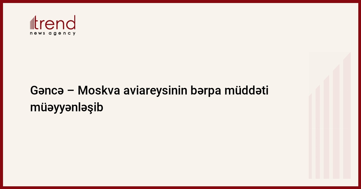 Azərbaycan, Bakı, 15 sentyabr / Trend , müxbir E.İsmayılov/ Gəncə - Moskva aviareysi sentyabrın 18 - də bərpa olunacaq. Bu barədə bazar ertəsi Gəncə aeroportundan bildiriblər. Biletlərin satışına artıq başlanılıb.